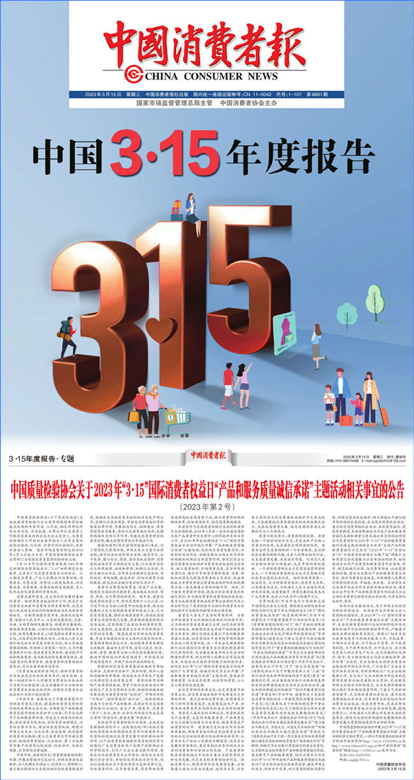 中國(guó)質(zhì)量檢驗(yàn)協(xié)會(huì)關(guān)于2023年“3·15”國(guó)際消費(fèi)者權(quán)益日