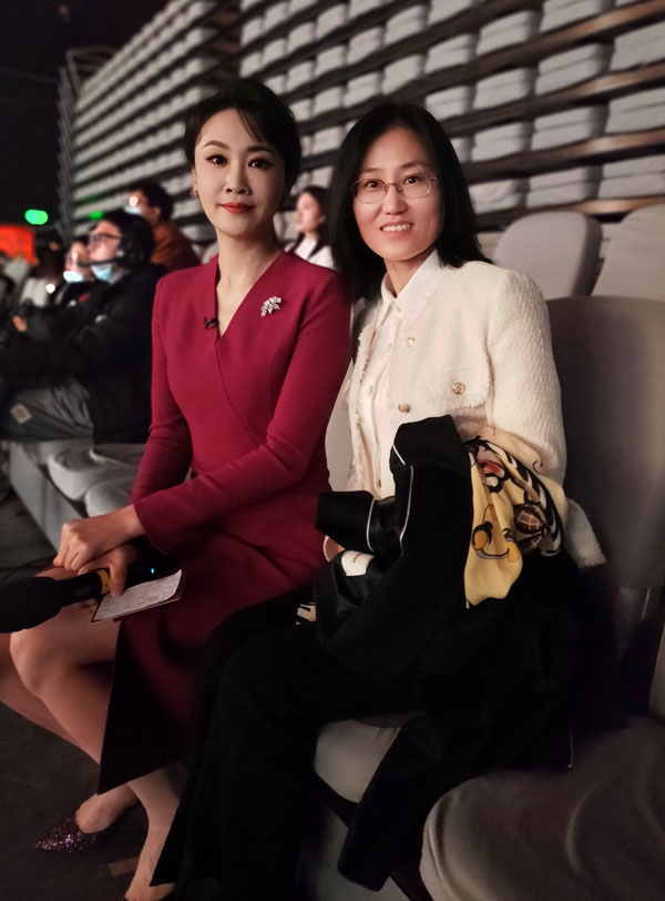 圖為質(zhì)檢協(xié)會(huì)會(huì)員協(xié)作發(fā)展中心主任劉輝和中央電視臺(tái)主持人陳偉鴻在3·15晚會(huì)現(xiàn)場(chǎng)