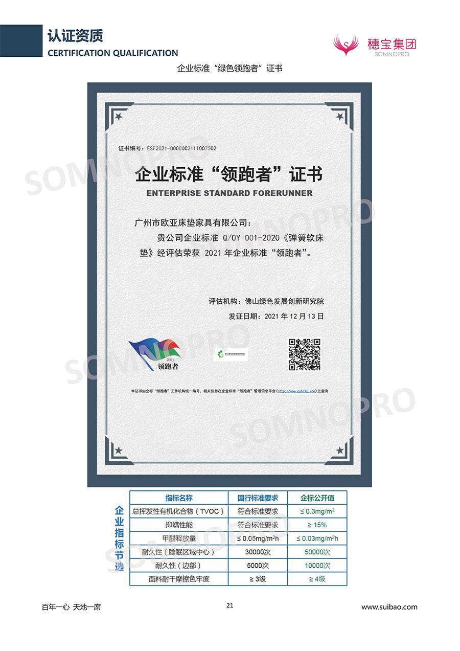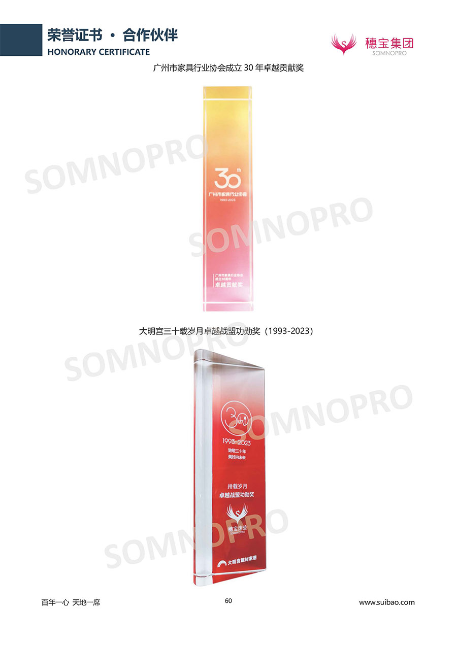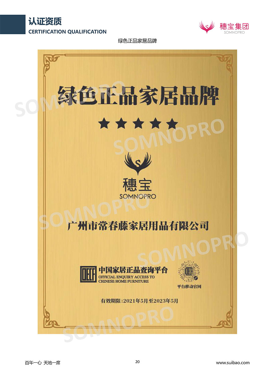 自1971年獨立研發(fā)生產(chǎn)出專屬國人的彈簧床墊,穗寶關(guān)于優(yōu)質(zhì)深度睡眠的研究已有半個世紀(jì)的歷史。穗寶一直專注床墊,專注中國消費者的睡眠研究,針對中國人特點進(jìn)行優(yōu)化創(chuàng)新,不斷提升國人的睡眠體驗,只為成就每個晚上8小時的優(yōu)質(zhì)深度睡眠。憑借不斷革新的研發(fā)科技和深受消費者信賴的產(chǎn)品品質(zhì),穗寶集團(tuán)旗下品牌和產(chǎn)品屢獲國內(nèi)外大獎,連續(xù)20年榮膺中國500最具價值品牌,品牌價值高達(dá)302.89億元。