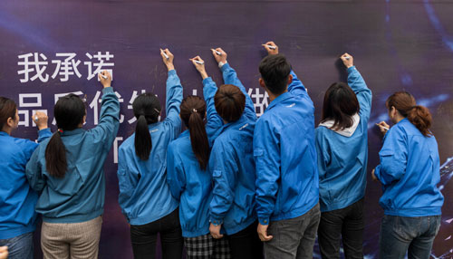 隨后,公司近千名員工在“品質(zhì)優(yōu)先,從我做起”承諾墻上簽名,鄭重地簽下自己的名字,做出了莊重的品質(zhì)承諾,將品質(zhì)月啟動儀式推向了高潮。