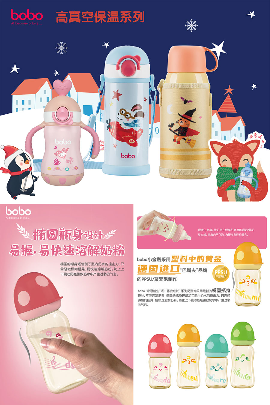 主要產(chǎn)品:bobo奶瓶、奶嘴、學飲杯、保溫壺、兒童餐具等