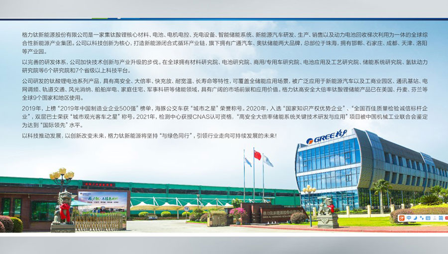 格力鈦新能源股份有限公司是一家集鈦酸鋰核心材料、電池、電機(jī)電控、充電設(shè)備、智能儲(chǔ)能系統(tǒng)、新能源汽車研發(fā)、生產(chǎn)、銷售以及動(dòng)力電池回收梯次利用為一體的全球綜合性新能源產(chǎn)業(yè)集團(tuán)。格力鈦以科技創(chuàng)新為核心,打造新能源閉合式循環(huán)產(chǎn)業(yè)鏈,旗下?lián)碛袕V通汽車、奧鈦儲(chǔ)能兩大品牌,總部位于珠海,擁有邯鄲、石家莊、成都、天津、洛陽(yáng)、南京等產(chǎn)業(yè)園。