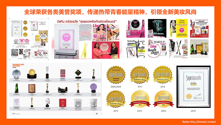 近年來,Mistine蜜絲婷更是先后榮獲ELLE雜志“THAILAND BEAUTY AWARDS”大獎、中國化妝品大會藍(lán)玫獎「2022年度競爭力品牌」、天貓金妝獎「年度防曬獎」、快手電商「年度甄選好物獎」、抖音電商「年度好物獎小IQF國際品質(zhì)節(jié)暨消費領(lǐng)導(dǎo)力峰會杰出消費影響力品牌」、CAQI中國質(zhì)量網(wǎng)「全國美妝行業(yè)質(zhì)量領(lǐng)先品牌」、2023美伊大賞TOP·護(hù)膚類防曬大獎、2023美伊大賞TOP·彩妝類底妝大獎等榮譽(yù)。