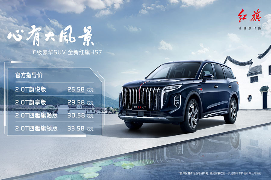 8月25日,“心有大風景——全新紅旗HS7上市發(fā)布會”在第二十六屆成都國際汽車展覽會舉行。紅旗品牌C級豪華SUV——全新紅旗HS7正式上市,官方指導價25.58萬~33.58萬元。