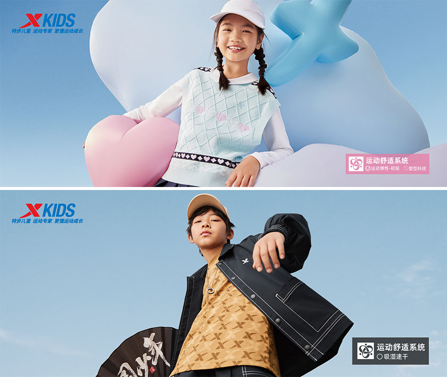 主要產(chǎn)品:特步兒童童鞋、童裝、兒童配件