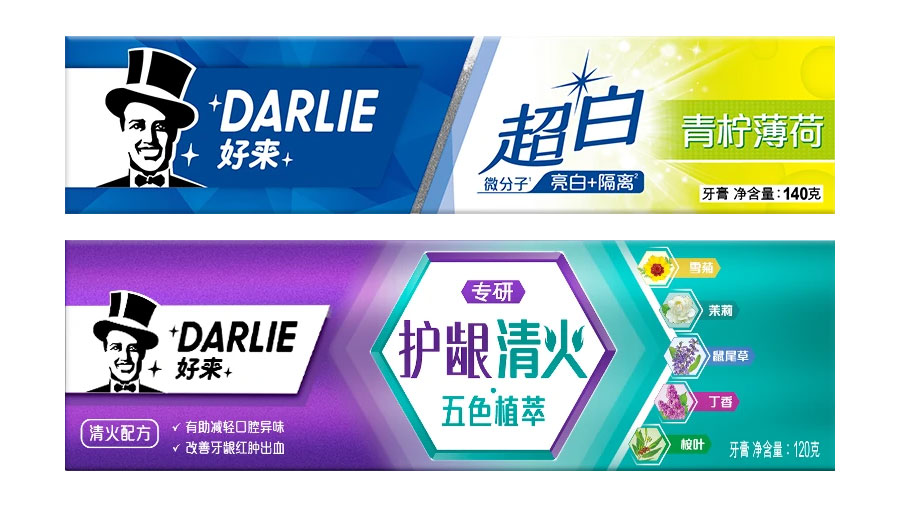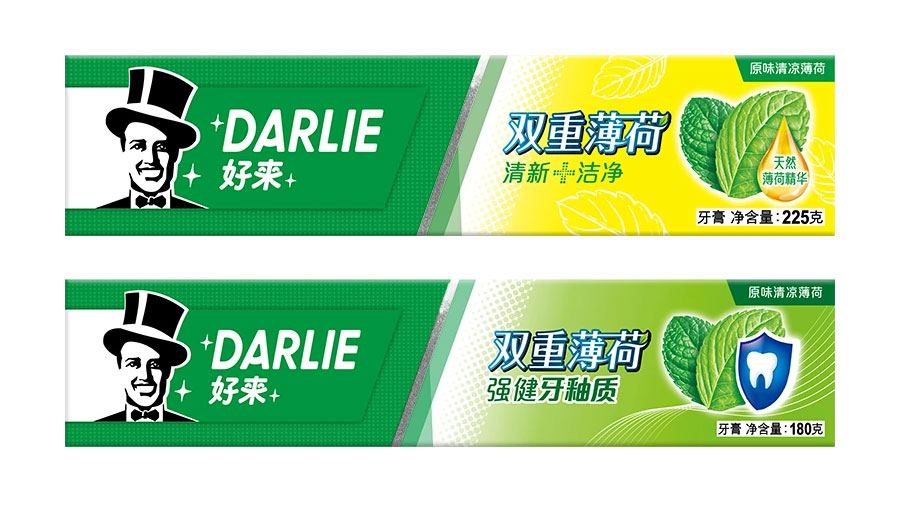 目前DARLIE好來牙膏共有數(shù)十個(gè)品種、多種規(guī)格(18g-250g),其中銷往中國大陸市場包括經(jīng)典的雙重薄荷系列、茶倍健系列、超白系列、專研護(hù)齦系列、抗敏感系列、透心爽系列,兒童牙膏系列及新增了白.酵素系列和星耀白系列等20個(gè)品種,另外還有多個(gè)品種同時(shí)銷往新加坡、馬來西亞、泰國、中國香港和中國臺(tái)灣等市場。