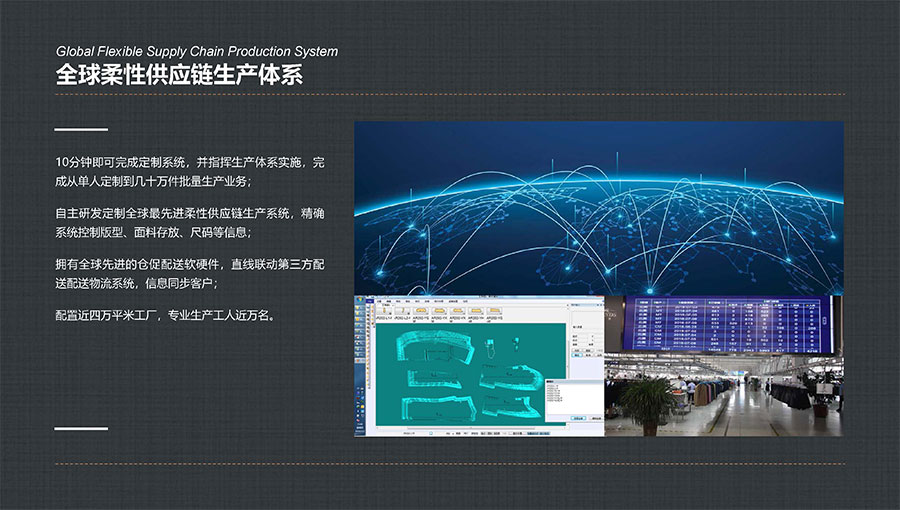 大楊集團(tuán)堅(jiān)持以“打造世界最強(qiáng)服裝定制平臺(tái)”為目標(biāo),重點(diǎn)打造數(shù)字化柔性智能定制工廠,以自主開(kāi)發(fā)的Ustyylit(優(yōu)思達(dá))服裝定制工業(yè)互聯(lián)網(wǎng)平臺(tái)為依托,以生產(chǎn)線的數(shù)字化改造為手段,實(shí)現(xiàn)多品種、小批量、高品質(zhì)、快速反應(yīng)的定制化生產(chǎn)模式。大楊集團(tuán)現(xiàn)已擁有7家智能化生產(chǎn)工廠、40條智能化生產(chǎn)線。其中,自主研發(fā)的“智能懸掛式高速分揀與存儲(chǔ)系統(tǒng)”榮獲“中國(guó)服裝行業(yè)科技進(jìn)步獎(jiǎng)一等獎(jiǎng)”。同時(shí),“支持深度定制與即時(shí)體驗(yàn)的服裝行業(yè)工業(yè)互聯(lián)網(wǎng)平臺(tái)”項(xiàng)目,入選工信部2020年度新型信息消費(fèi)示范項(xiàng)目,以及2022年工業(yè)互聯(lián)網(wǎng)平臺(tái)創(chuàng)新領(lǐng)航應(yīng)用案例,被授予中國(guó)紡織行業(yè)數(shù)字化轉(zhuǎn)型勞動(dòng)競(jìng)賽先進(jìn)單位。