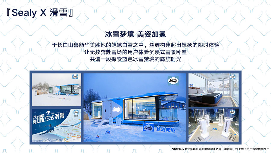于長白山魯能華美勝地的皚皚白雪之中,絲漣構建超出想象的限時體驗,讓無數(shù)奔赴雪場的用戶體驗沉浸式雪景臥室,共譜一段探索藍色冰雪夢境的旖旎時光。
