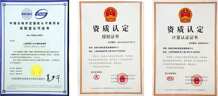 國(guó)家內(nèi)燃機(jī)質(zhì)量監(jiān)督檢驗(yàn)中心是中國(guó)合格評(píng)定國(guó)家認(rèn)可委員會(huì)認(rèn)可的檢測(cè)實(shí)驗(yàn)室,認(rèn)可名稱為上海機(jī)械工業(yè)內(nèi)燃機(jī)檢測(cè)所。
