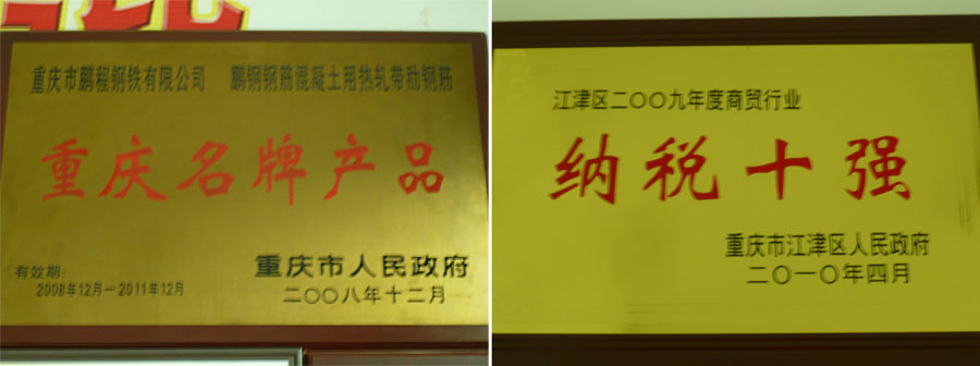 “鵬鋼牌”鋼筋混凝土用熱軋帶肋鋼筋采用了國(guó)際上流行的四位一體短流先進(jìn)生產(chǎn)工藝。2012年公司生產(chǎn)的熱軋帶肋鋼筋HRB400高強(qiáng)鋼筋取得生產(chǎn)許可證,被重慶市政府評(píng)為“重慶名牌”產(chǎn)品。“鵬鋼牌”鋼筋混凝土用熱軋帶肋鋼筋每年均受江津區(qū)質(zhì)量技術(shù)監(jiān)督局、重慶市質(zhì)量技術(shù)監(jiān)督局等部門(mén)的監(jiān)督抽查,合格率達(dá)100%。在全市同行中,“鵬鋼牌”鋼筋混凝土用熱軋帶肋鋼筋無(wú)論是產(chǎn)量、質(zhì)量、市場(chǎng)占有率在全市都名列第一。