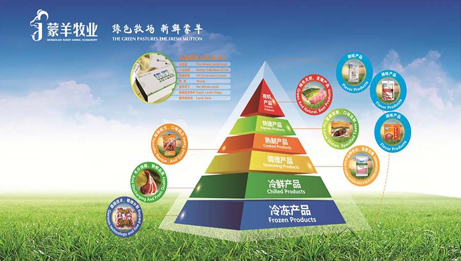 主要產(chǎn)品:蒙羊牌冷凍產(chǎn)品、冷鮮產(chǎn)品、調(diào)理產(chǎn)品、熟食產(chǎn)品、快捷產(chǎn)品、有機產(chǎn)品