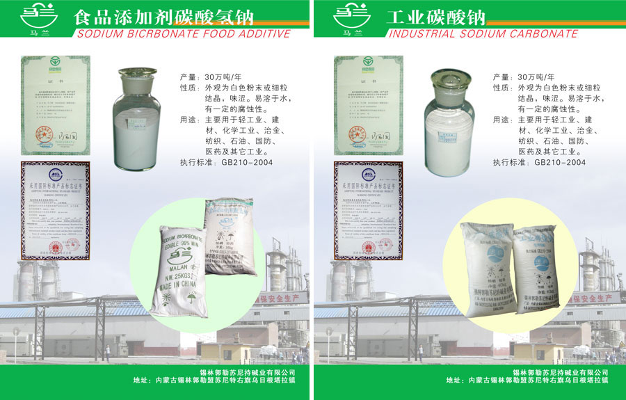 主要產(chǎn)品:遠(yuǎn)興牌、中天牌純堿(工業(yè)碳酸鈉),馬蘭牌小蘇打