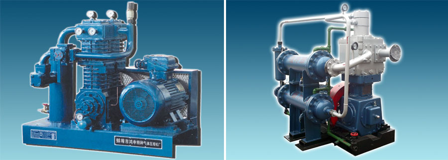 壓縮機產(chǎn)品可分六大系列:a.液化氣系列;b.天然氣系列(含天然氣增壓、原油穩(wěn)定、輕烴回收、天然氣汽車加氣、高壓充瓶、油井干或濕套管氣回收、煤層氣壓縮機系列);c.化工工藝壓縮機;d.工業(yè)特種氣體系列壓縮機;e.一般動力工程用壓縮機;f.油田、軍用中高壓系列壓縮機,近百個規(guī)格品種,排氣量從0.1~40 m3/min,排氣壓力從0.2 MPa~35 Mpa。