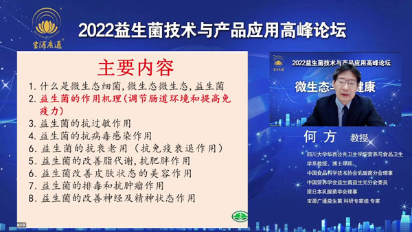何方教授從益生菌對(duì)人體健康的眾多重要作用,又從科研實(shí)驗(yàn)及國內(nèi)外全球視角把益生菌的功能、產(chǎn)品應(yīng)用做了專業(yè)講解。對(duì)寶源廣通益生菌的菌株、高活菌等科學(xué)組方做了分析推薦。