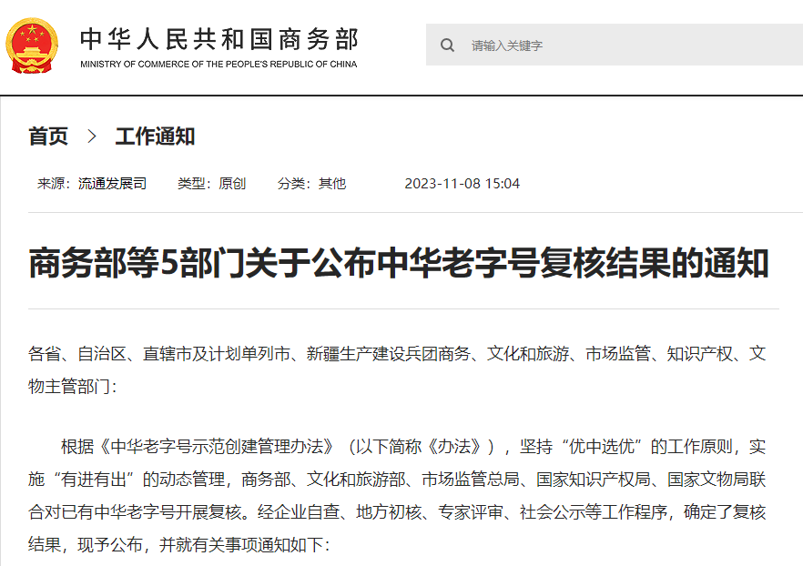 關(guān)于公布中華老字號(hào)復(fù)核結(jié)果的通知