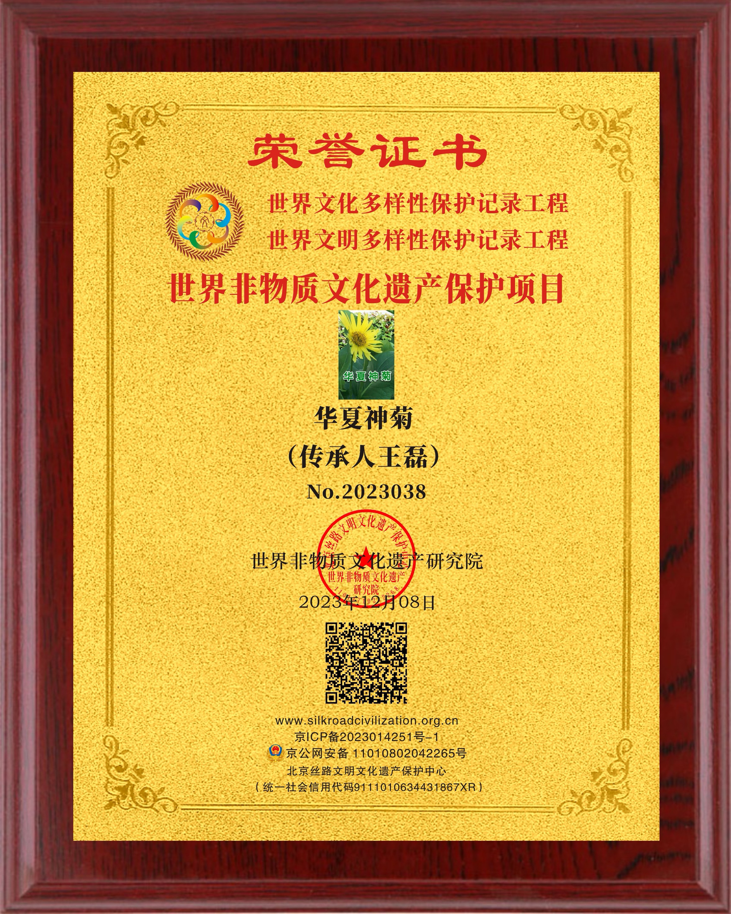 各位“愛(ài)菊人”艱難的等待換來(lái)了無(wú)窮的動(dòng)力,特別是在2023年12月份獲批“世界非物質(zhì)文化遺產(chǎn)保護(hù)項(xiàng)目”是對(duì)“華夏神菊”的種植、加工、研發(fā)、和功能、效果等方面的首肯。經(jīng)歷了近三年的申報(bào)於今年12月8日正式申報(bào)成功,意味著“華夏神菊”已列入“世界非遺”目錄中,這是國(guó)家的榮譽(yù)、我們所有“愛(ài)菊人”的榮耀,為此,我們?nèi)A夏神菊產(chǎn)業(yè)報(bào)國(guó)運(yùn)營(yíng)團(tuán)隊(duì)將有新的布局:首先,結(jié)帳清算,調(diào)整種植面積,邀請(qǐng)中科院院士設(shè)立:華夏神菊生命科學(xué)研究院并設(shè)立院士工作站。