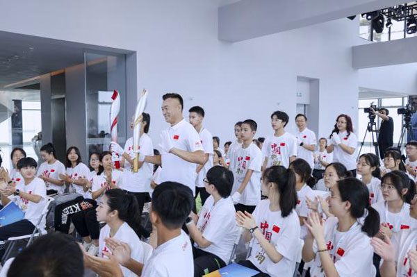 活動現(xiàn)場舉行了莊嚴隆重的奧運火炬?zhèn)鬟f儀式,將活動推向高潮。2024年巴黎奧運會舉辦之際,安踏希望班的同學們也將高中畢業(yè)步入大學,迎來人生新階段。火炬在同學和嘉賓的手中傳遞,點燃了同學們對未來的憧憬,體育的力量燃起了沖刺的斗志。