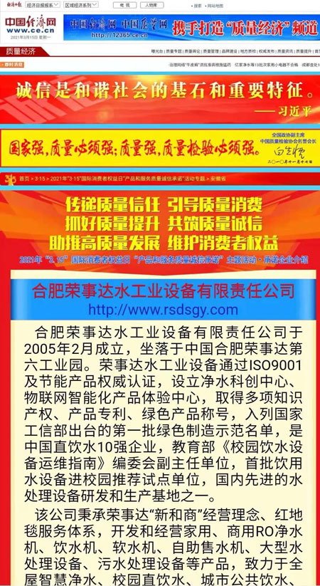 誠信315 | 熱烈祝賀榮事達(dá)榮獲“全國產(chǎn)品和服務(wù)質(zhì)量誠信示范企業(yè)”“全國質(zhì)量信得過產(chǎn)品”“全國凈水行業(yè)質(zhì)量領(lǐng)先品牌”等多項(xiàng)榮譽(yù)