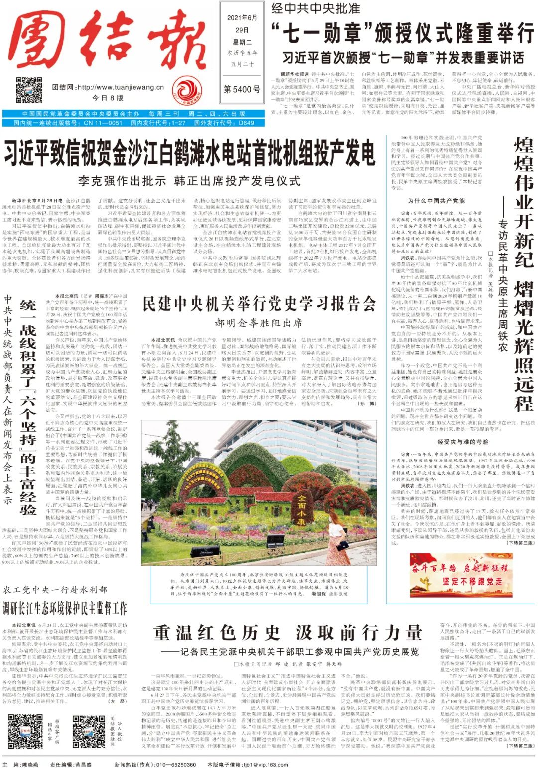 《團結(jié)報》2021年6月29日1版 刊登此文