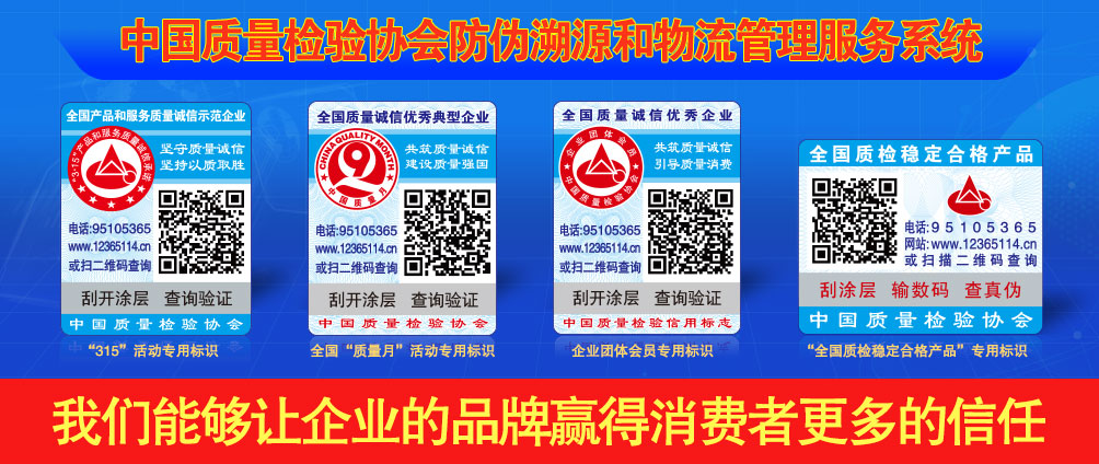 - “全國(guó)質(zhì)量檢驗(yàn)穩(wěn)定合格產(chǎn)品”調(diào)查匯總和“全國(guó)質(zhì)量信得過產(chǎn)品”及“全國(guó)行業(yè)質(zhì)量誠(chéng)信領(lǐng)先品牌”與“全國(guó)質(zhì)量誠(chéng)信先進(jìn)企業(yè)”公告展示