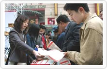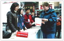 國(guó)家質(zhì)檢總局組織的2004年3·15咨詢活動(dòng) 現(xiàn)場(chǎng)掠影(圖為一位外國(guó)友人在接過 中國(guó)質(zhì)檢協(xié)會(huì)人員散發(fā)的“3·15”國(guó)際 消費(fèi)者權(quán)益日宣傳材料,連說“OK!OK!”) |