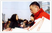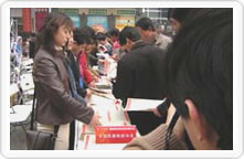 國(guó)家質(zhì)檢總局組織的2004年3·15咨詢活動(dòng) 現(xiàn)場(chǎng)掠影(圖為:北京市民們和來京旅游者 踴躍索取中國(guó)質(zhì)檢協(xié)會(huì)工作人員散發(fā)的3.15 國(guó)際消費(fèi)者權(quán)益日宣傳材料) |