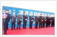 國家質檢總局組織的2005年3·15咨詢活動 現(xiàn)場掠影(圖為:國家質檢總局李長江局長、 李傳卿書記等領導和北京市政府陸昊副市長 等領導在參加活動開幕式) |