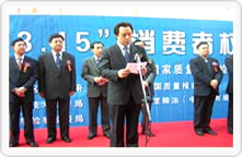 國家質檢總局組織的2005年3·15咨詢活動 現(xiàn)場掠影(圖為:國家質檢總局蒲長城副局長 在活動開幕式上講話) |
