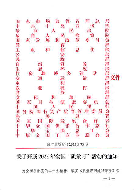 全國“質(zhì)量月”活動是我國長期開展的一項重大質(zhì)量活動,是在政府主管部門的倡導(dǎo)和部署下,聯(lián)合國家相關(guān)部委(部門)和單位并發(fā)動廣大企業(yè)與全社會積極參與,一年一度以多種形式于每年9月在全國范圍內(nèi)組織開展跨時一個月并旨在提高全民質(zhì)量意識和質(zhì)量水平的國家級大型質(zhì)量專題活動,全力營造人人關(guān)心質(zhì)量、重視質(zhì)量、創(chuàng)造質(zhì)量、享受質(zhì)量的良好社會氛圍,推進建設(shè)質(zhì)量強國。